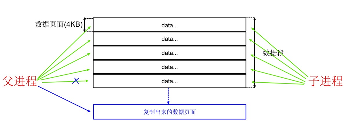 当父进程对数据段中的某一数据页面进行修改操作时,Linux操作系统会将该数据页面复制一份分离出来,然后对该页面进行修改,最后父进程指向指向修改后的页面。随着被修改的页面越来越多,内存空间不断膨胀,最多达到原来的两倍