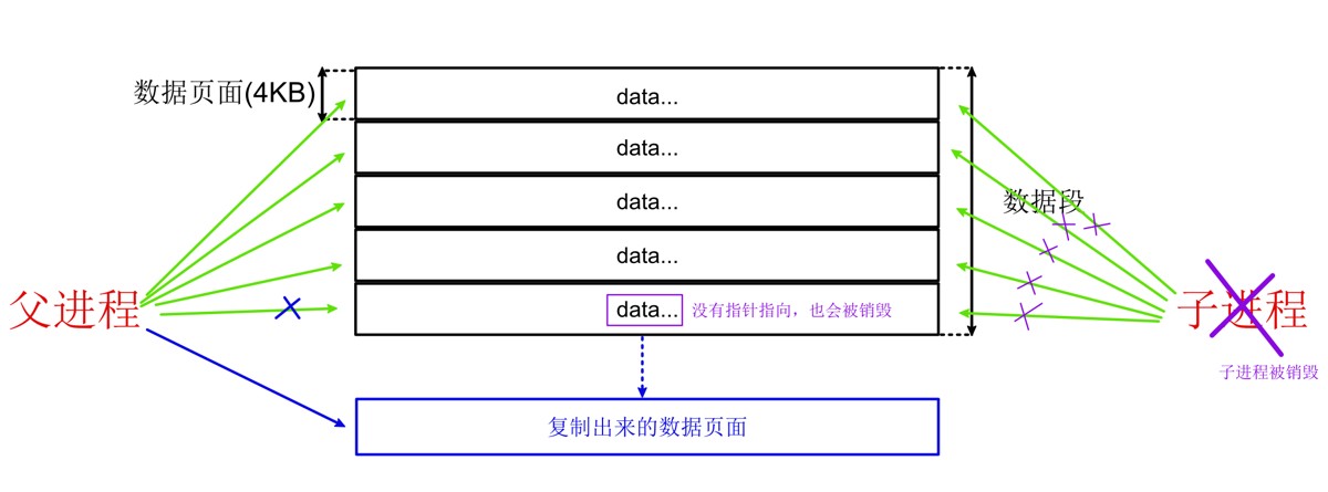 拷贝完成后,子进程会被销毁,同时没有指针指向的数据页面也会被销毁