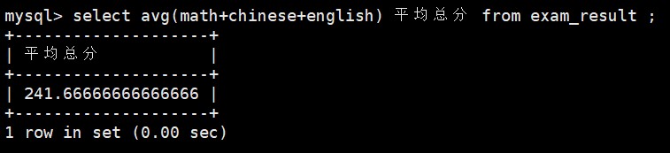 select avg(math+chinese+english) 平均总分 from exam_result ;