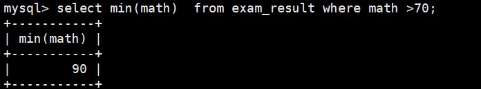 select min(math) from exam_result where math >70;