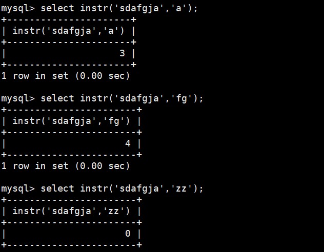 select instr(string,substring);