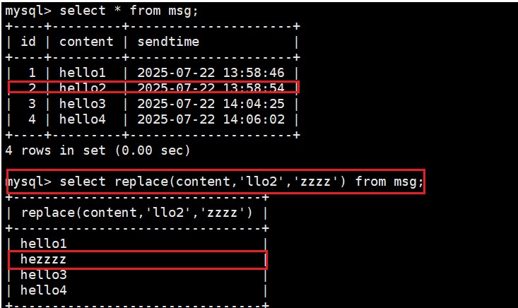 insert into msg(content,sendtime) values('hello2', now());