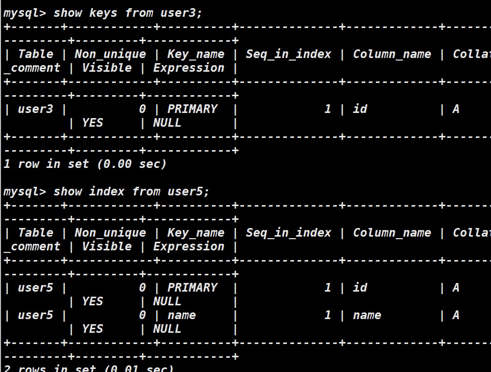 show 【索引】from【表】