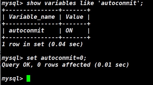 show variables like ‘autocommmit' set autocommit = (1开 / 0关)