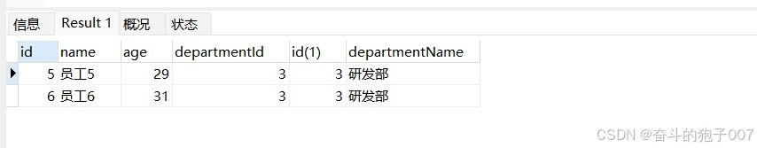 SELECT t1.*,t2.* FROM t_test_staff t1 left join t_test_department t2 on t1.departmentId = t2.id where t2.departmentName = '研发部';