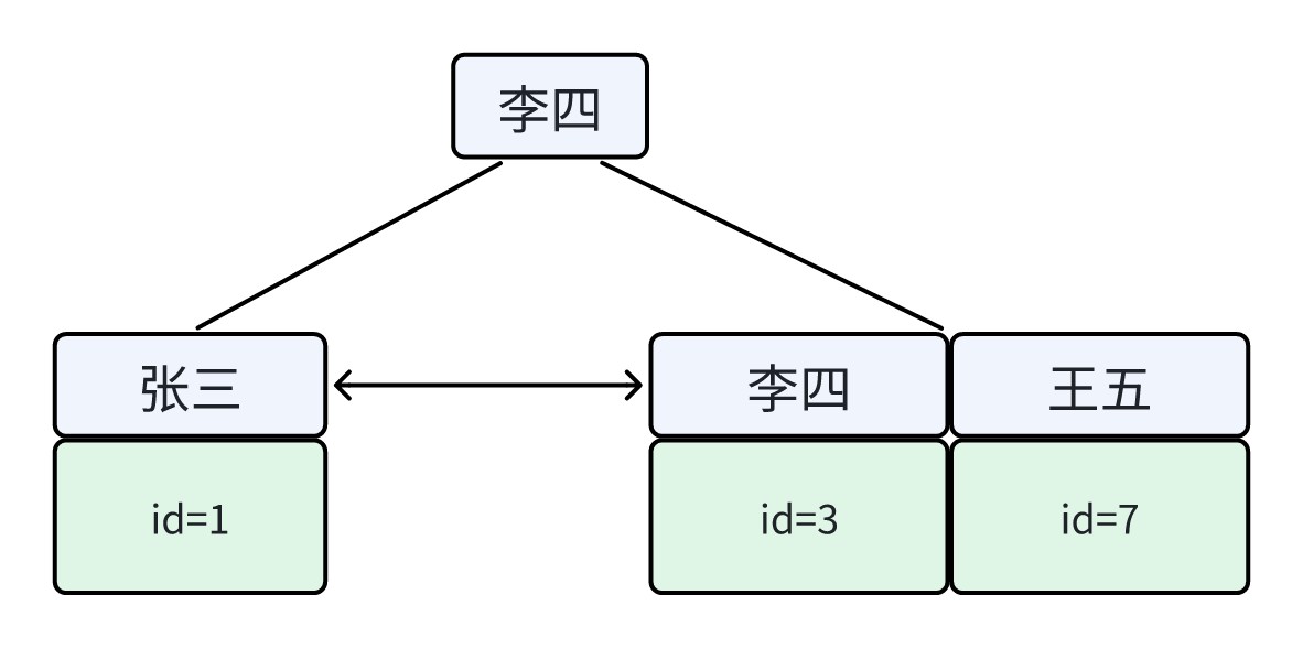 name='李四' ↓ 在 idx_name B+Tree 中定位 ↓ 得到主键 id = 3