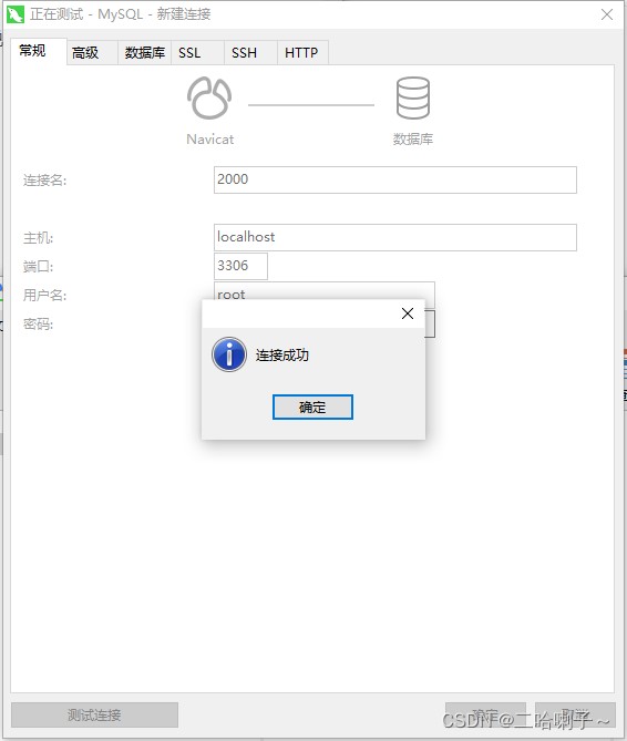 之后选择左下角测试连接试试能否连上,弹出以下界面说明成功了