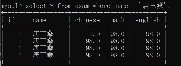只有每一列都相同,MySql才认为他是重复数据。