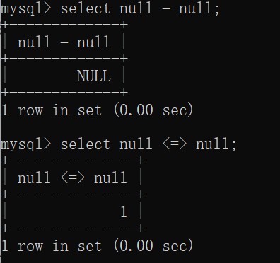 但是=判断不了null,所以就需要用<=> 来判断是否是等于null了