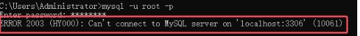 1. 提示ERROR 2003 (HY000): Can‘t connect to MySQL server on ‘localhost:3306‘ (10061)