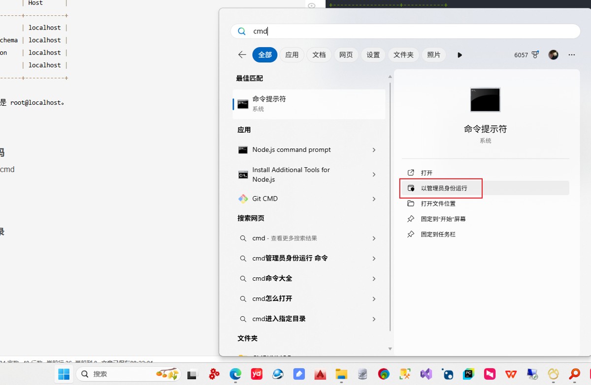 - 管理员启动cmd - 以管理员身份运行