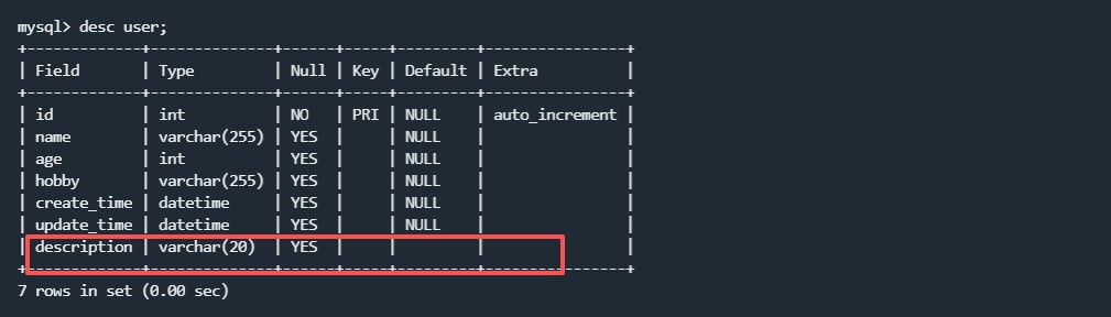再去查询表结构: