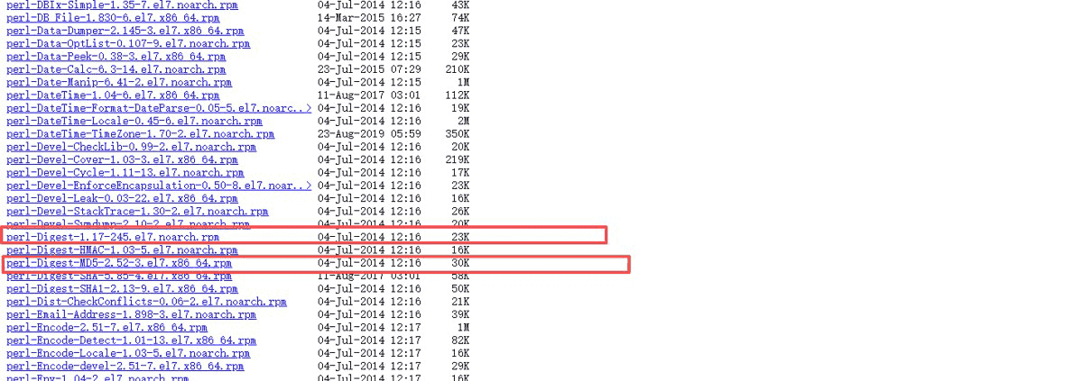 rpm -ivh perl-Digest-1.17-245.el7.noarch.rpm rpm -ivh perl-Digest-MD5-2.52-3.el7.x86_64.rpm