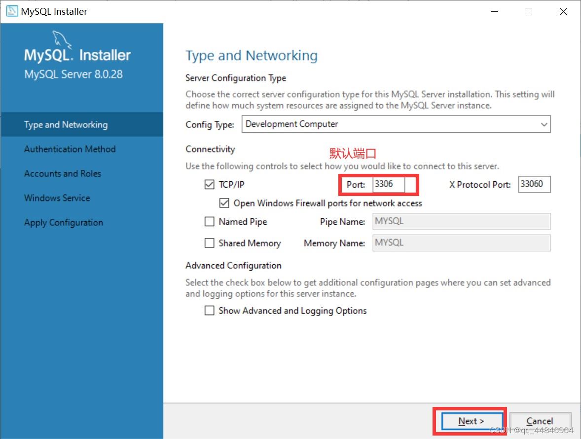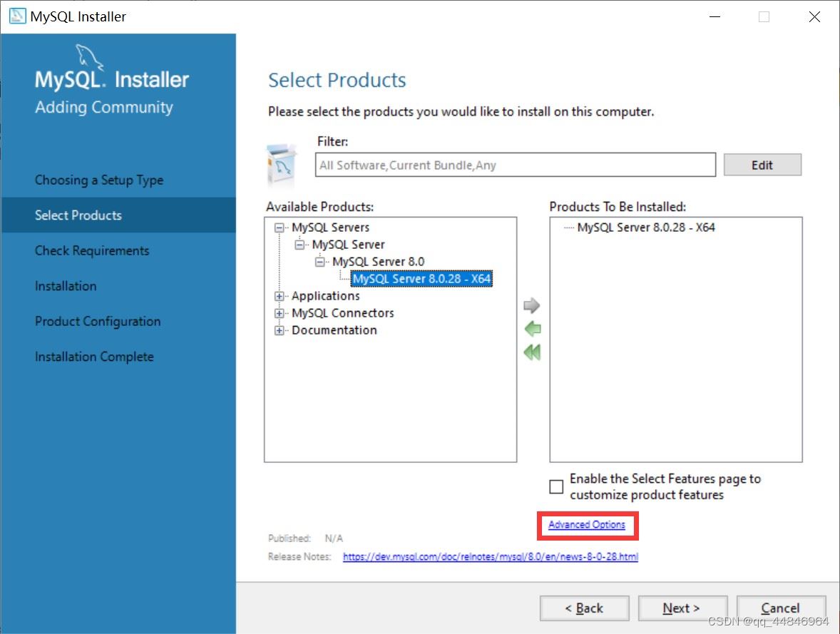 2.3、再次点击MySQL Server出现Advanced Options,选择安装的目录