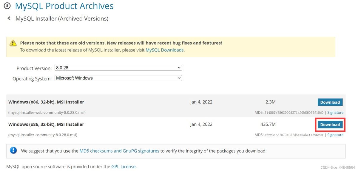 步骤一、进入官网下载相应版本的MySQL安装程序