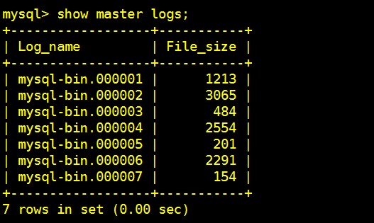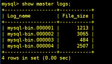 查看所有binlog日志文件列表:show master logs;