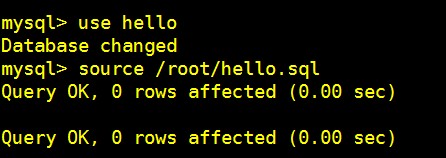 由于操作失误,误删除了数据库,所有数据都不见了,此时可以通过binlog日志恢复数据,由于之前有做了数据库备份,所以可以先将备份的数据导入进去,剩下缺少的就是备份之后操作所产生的内容(备份之后执行了插入内容以及更改内容),先恢复备份的数据:创建库hello并选择库(use hello),通过命令source /root/hello.sql将数据库内容导入,然后执行