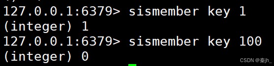 返回值:1 表示元素在 set 中。0 表示元素不在 set 中或者 key 不存在。