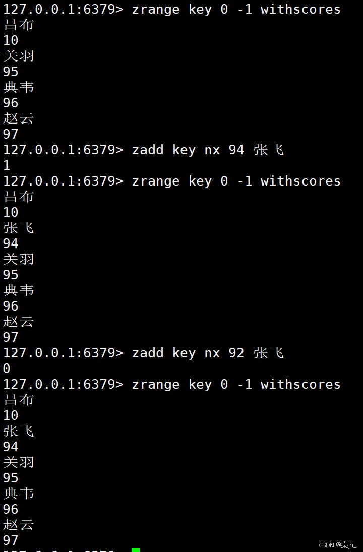 - CH:默认情况下,ZADD 返回的是本次添加的元素个数,但指定这个选项之后,就会还包含本次更 新的元素的个数。