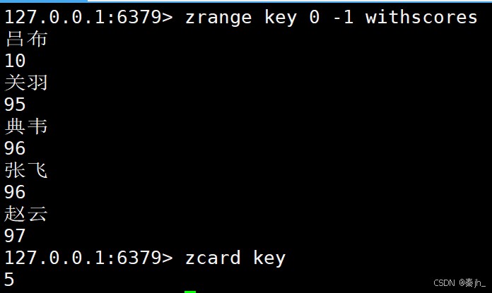 返回值:zset 内的元素个数。