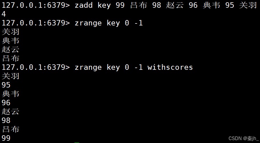 如下图所示,该有序集合显示了三国中的武将的武力。