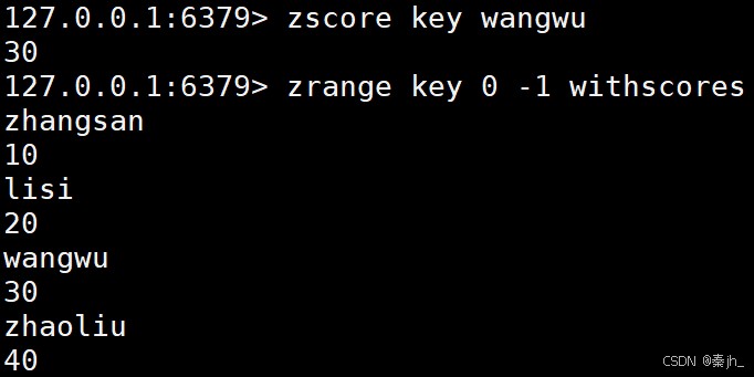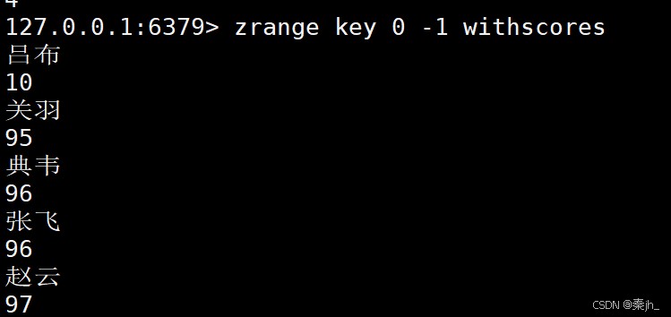 返回指定区间里的元素,分数按照升序。带上 WITHSCORES 可以把分数也返回。