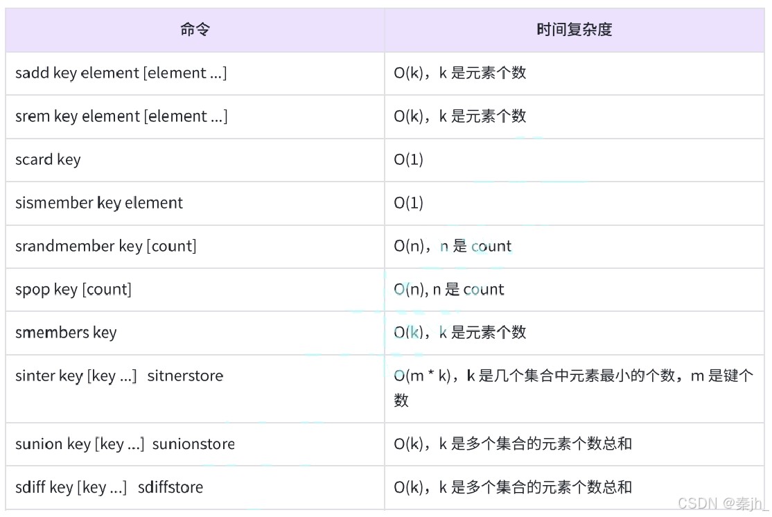 集合类型也是保存多个字符串类型的元素的,但和列表类型不同的是,集合中 1)元素之间是无序 的 2)元素不允许重复,如下图。