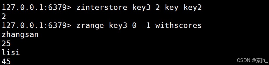 返回结果中,交集的zhangsan就是20+45=65