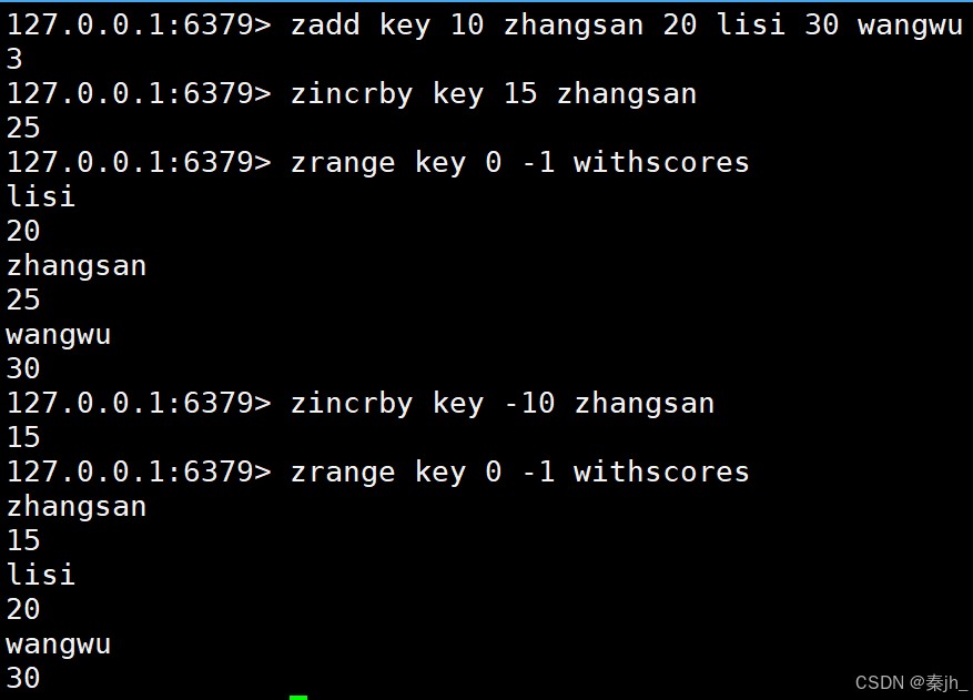 - INCR:此时命令类似 ZINCRBY 的效果,将元素的分数加上指定的分数。此时只能指定一个元素和 分数。