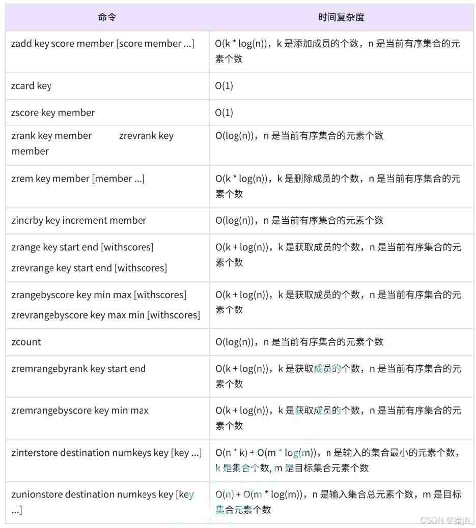- skiplist(跳表):当 ziplist 条件不满足时,有序集合会使用 skiplist 作为内部实现,因为此时 ziplist 的操作效率会下降。