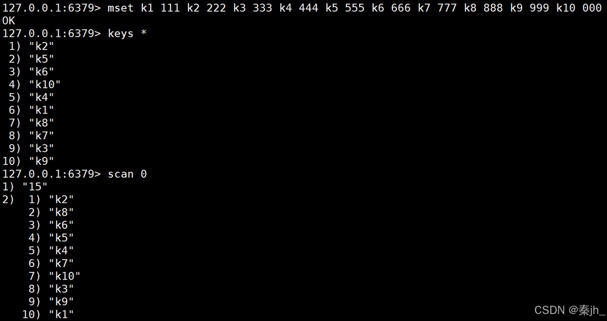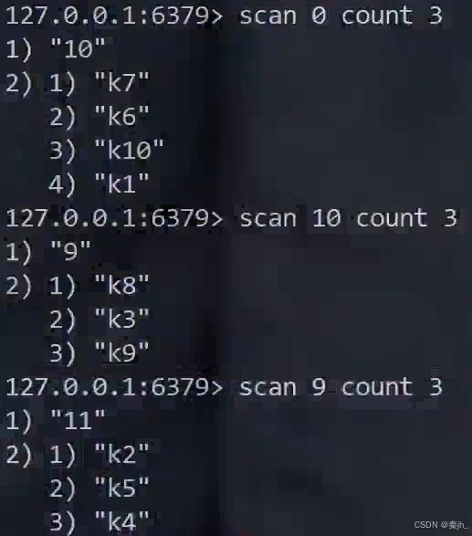 第一次遍历,返回的cursor是15,所以下一次遍历要从15开始。第二次返回的cursor是0,说明遍历已经结束了。