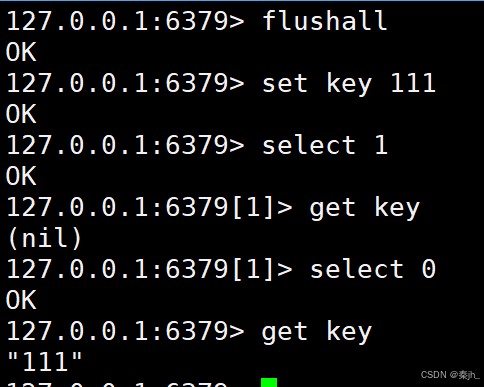 flushdb / flushall 命令用于清除数据库,区别在于 flushdb 只清除当前数据库,flushall 会清楚所有数 据库。