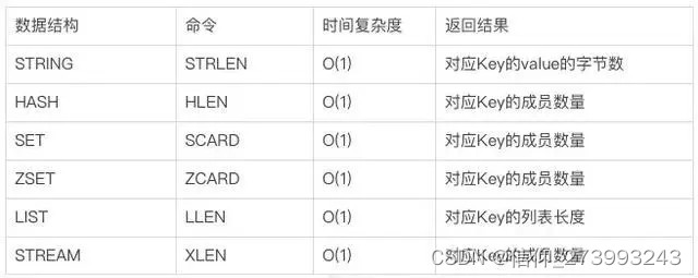 - Redis对于不同的数据结构提供了不同的命令来返回其长度或成员数量,如下图