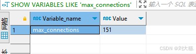 -- 最大允许连接数 SHOW VARIABLES LIKE 'max_connections';