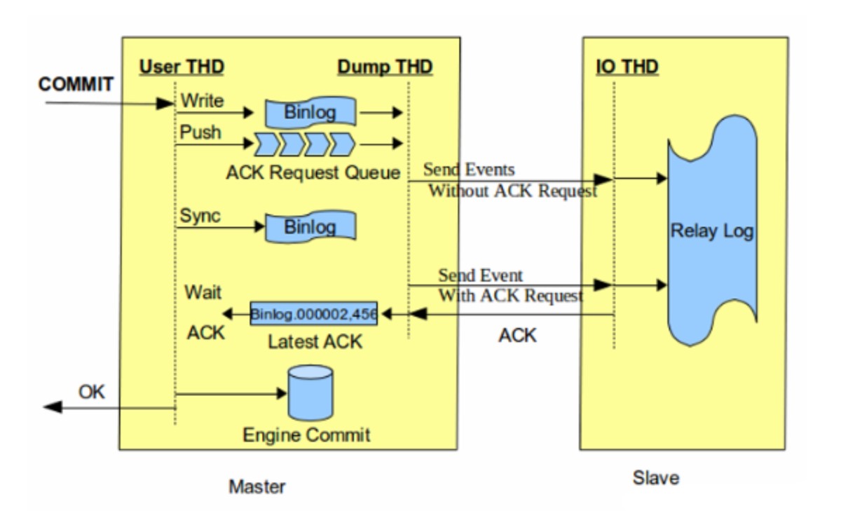 after_commit模式(先提交再等 ACK),存在数据风险。MySQL 5.7+ 默认使用更安全的AFTER_SYNC模式。