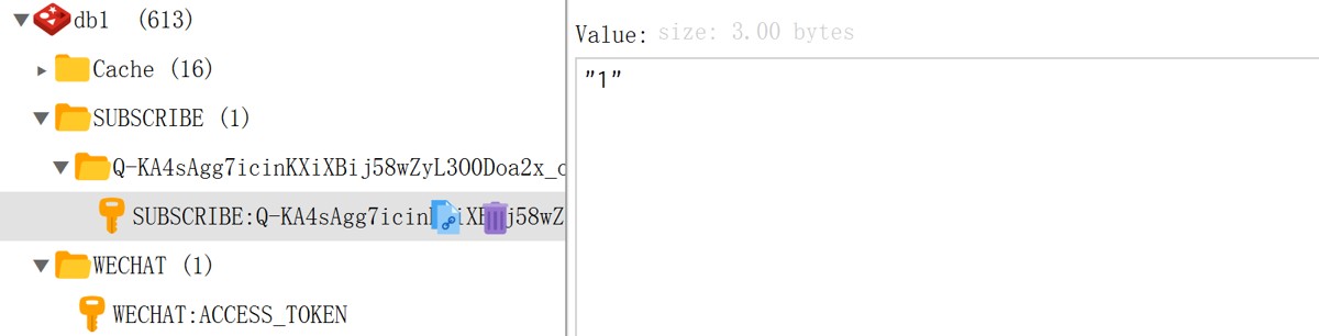 String key = "SUBSCRIBE:" + templateId + ":" + openId; redisTemplate.opsForValue().set(key, "1", 30, TimeUnit.DAYS); // 检查是否订阅 Boolean exists = redisTemplate.hasKey(key);