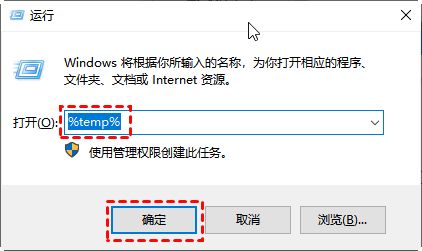 通过快捷键“Win+R”打开运行窗口,输入“%temp%”并点击“回车”打开文件夹。