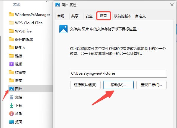 ③点击“位置”选项卡,选择“移动”,将路径修改为D盘的对应文件夹。