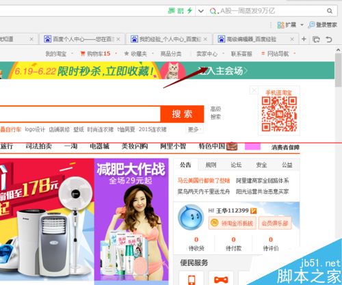 2、登入自己的淘宝账号,在首页找到卖家中心。