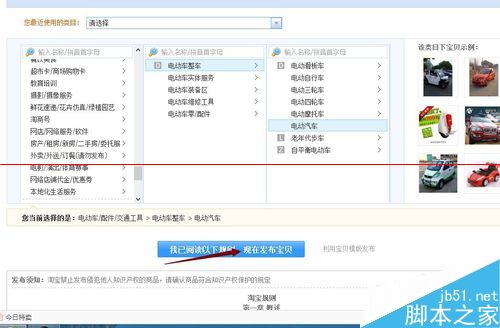 4、发布你想要发布的宝贝,选清楚类目。后单击“我已阅读以下规则,现在发布宝贝”