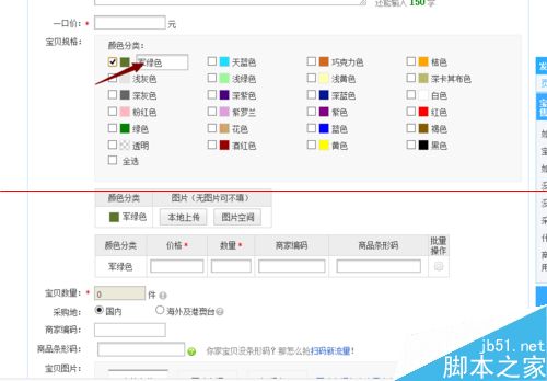 5、找到宝贝规格那栏,任意点击白色的方框,其后面颜色的方框会发生变化,这是就可以修改了。