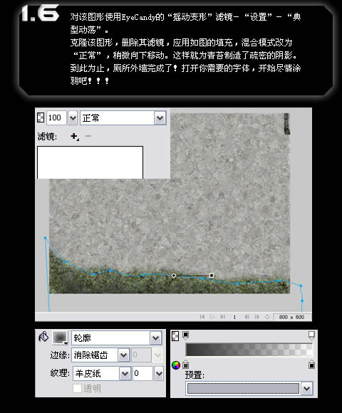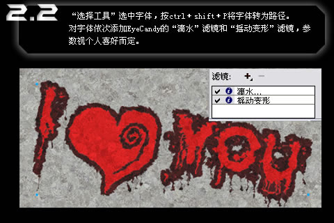 对字体依次添加EyeCandy的“滴水”滤镜和“摇动变形”滤镜,参数视个人喜好而定。