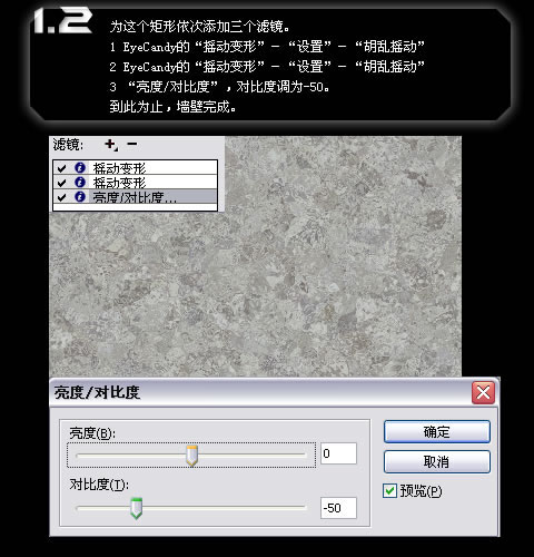 - “亮度/对比度”,对比度调为-50。