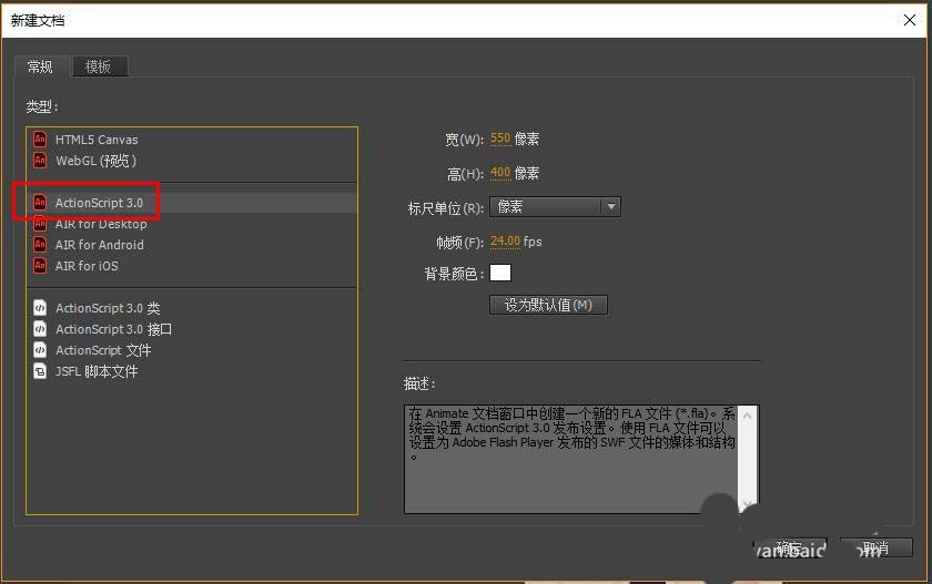 1、这里的题目内容比较简单,但是也制作答错答对两种情况的提示。打开软件,新建AS3文档。