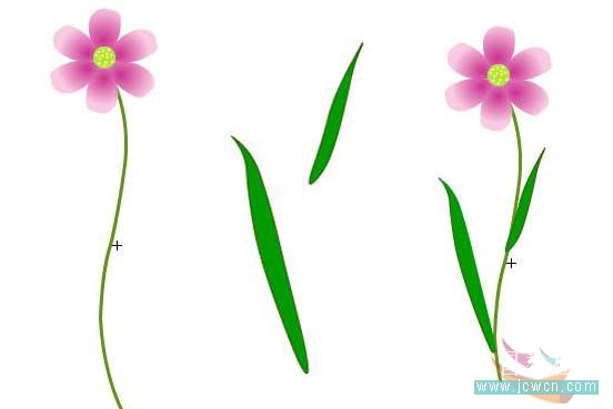 媒体动画 > Flash教程 > Flash动画制作技巧 > Flash新手鼠绘(3):漂亮的卡通花草场景 2008-10-24 17:29:22 佚名 四、画叶子和花枝 1、插入一个图形元件"花枝1",拖入"花1"元件,新建一层(名为花杆),拉到花层下面画花杆,先画直线然后调整成图示形状,色码:629218,笔触设置为:3。新建一层(名为叶)画两个细长椭圆,调整成树叶状,安放在适当位置,色码:009900。如图所示: 2、用同样的方法制作“花枝2、”“花枝3”和“花蕾枝1”、“花蕾枝2”、“花蕾枝3”,如图所示: 上一页 1 2 3 4 56 下一页 阅读全文
