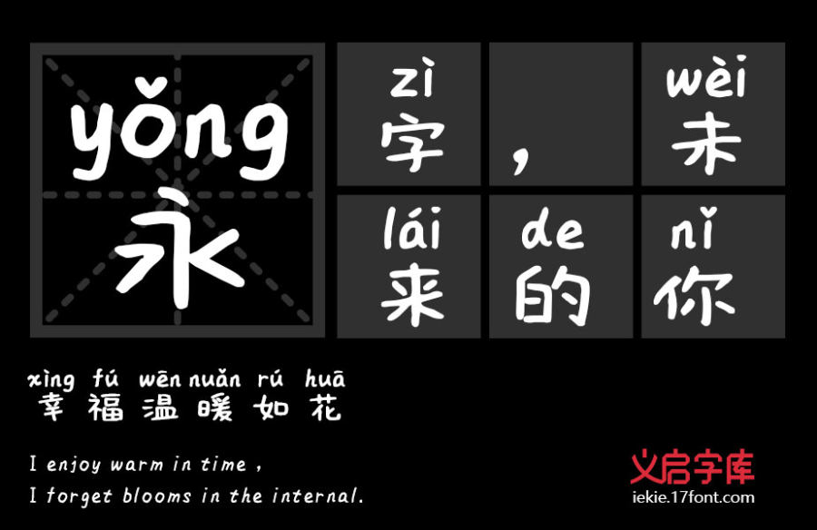 义启招财进宝一款不错的艺术字体,由义启字库出品,字体笔触粗实,书写端正,支持汉字拼音同步输入,适合应用于艺术设计、平面宣传设计、网页设计,书法字帖等领域,需要的朋友可以前来本站下载。