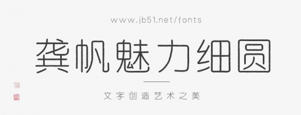 龚帆魅力细圆是一款赏心悦目的艺术字体,字体线条粗细适中,笔画随性,结构肆意洒脱,具有很好的视觉感。适用于标题,书刊印刷,广告包装设计等场景。
