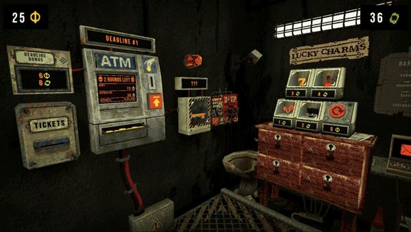 1、CloverPit游戏的创意足够离经叛道,你被困在一个诡异牢笼中,唯一的生路,是一台老旧的老虎 机与一连串令人窒息的“还债轮回”。