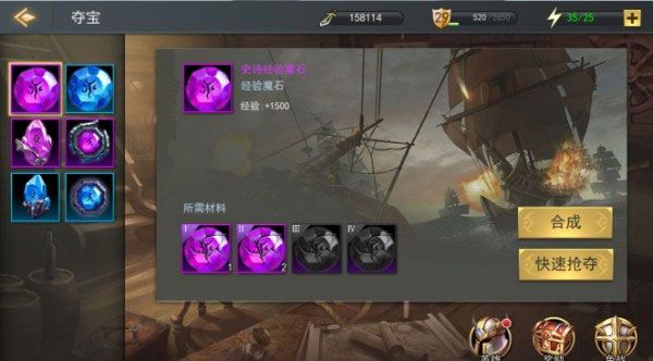 玩家等级达到13级后开启夺宝系统,夺来的宝物可以大幅度提升角色属性,在夺宝的同时也可以获得大量金钱奖励。当玩家身上有珍贵魔石碎片时,请务必夺宝集齐所有碎片并合成,不然小心被其他玩家抢夺了!