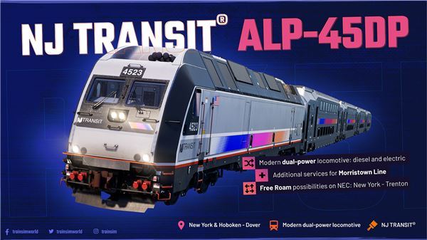 豪华版:启动原动机或升起集电弓,驾驶多功能的新泽西交通公司®ALP-45DP 型机车,提供更多的繁忙通勤服务。